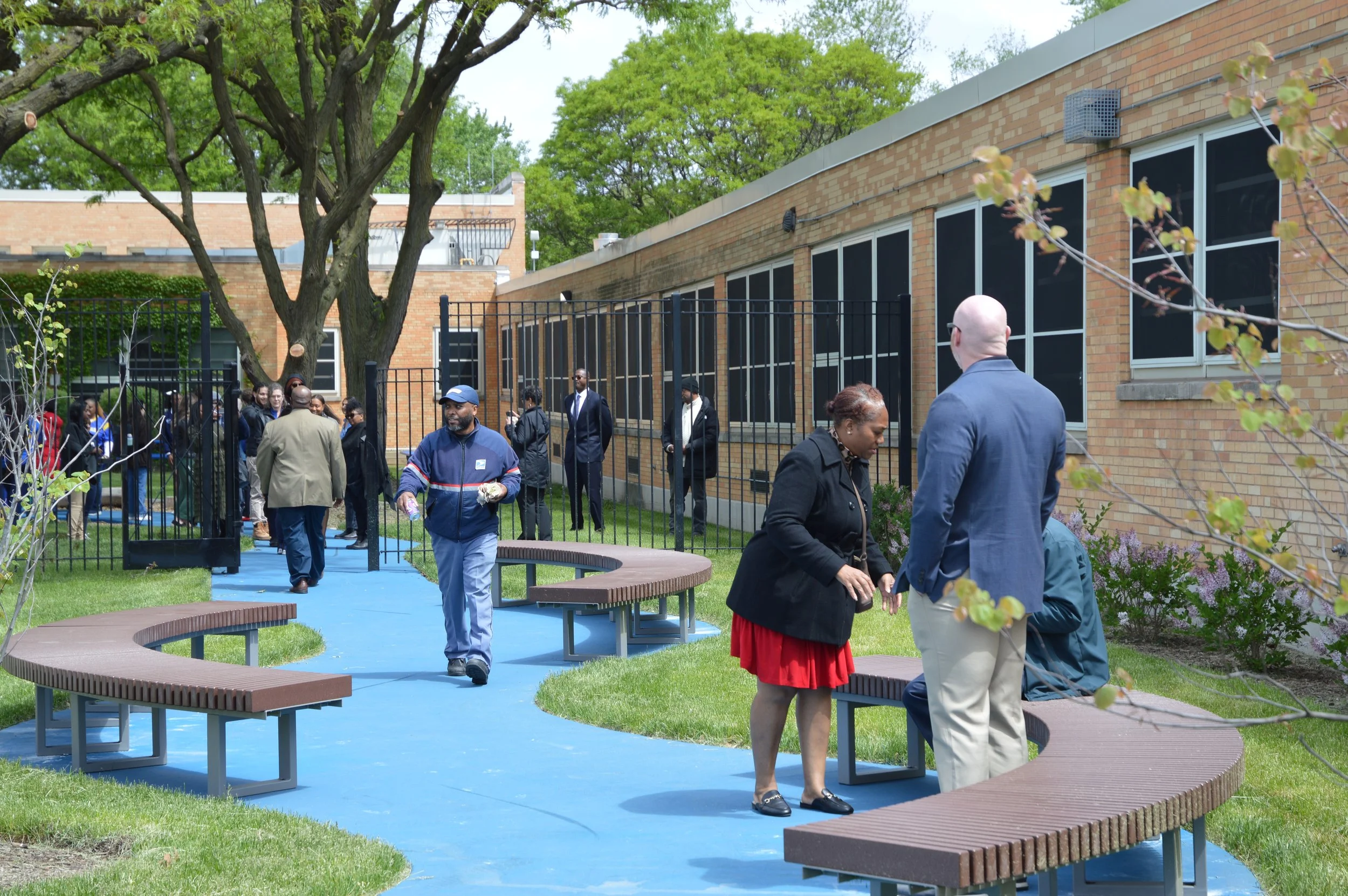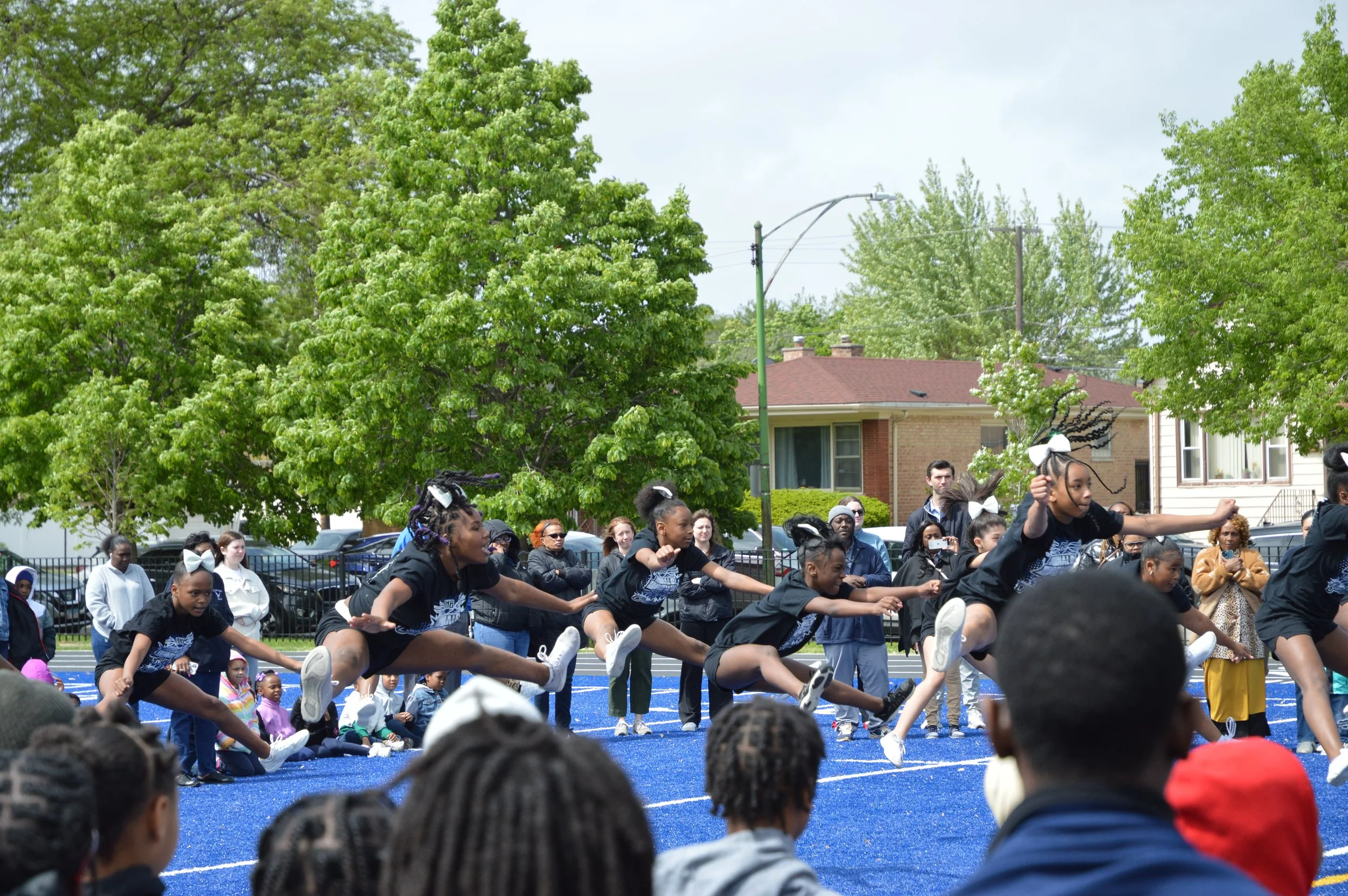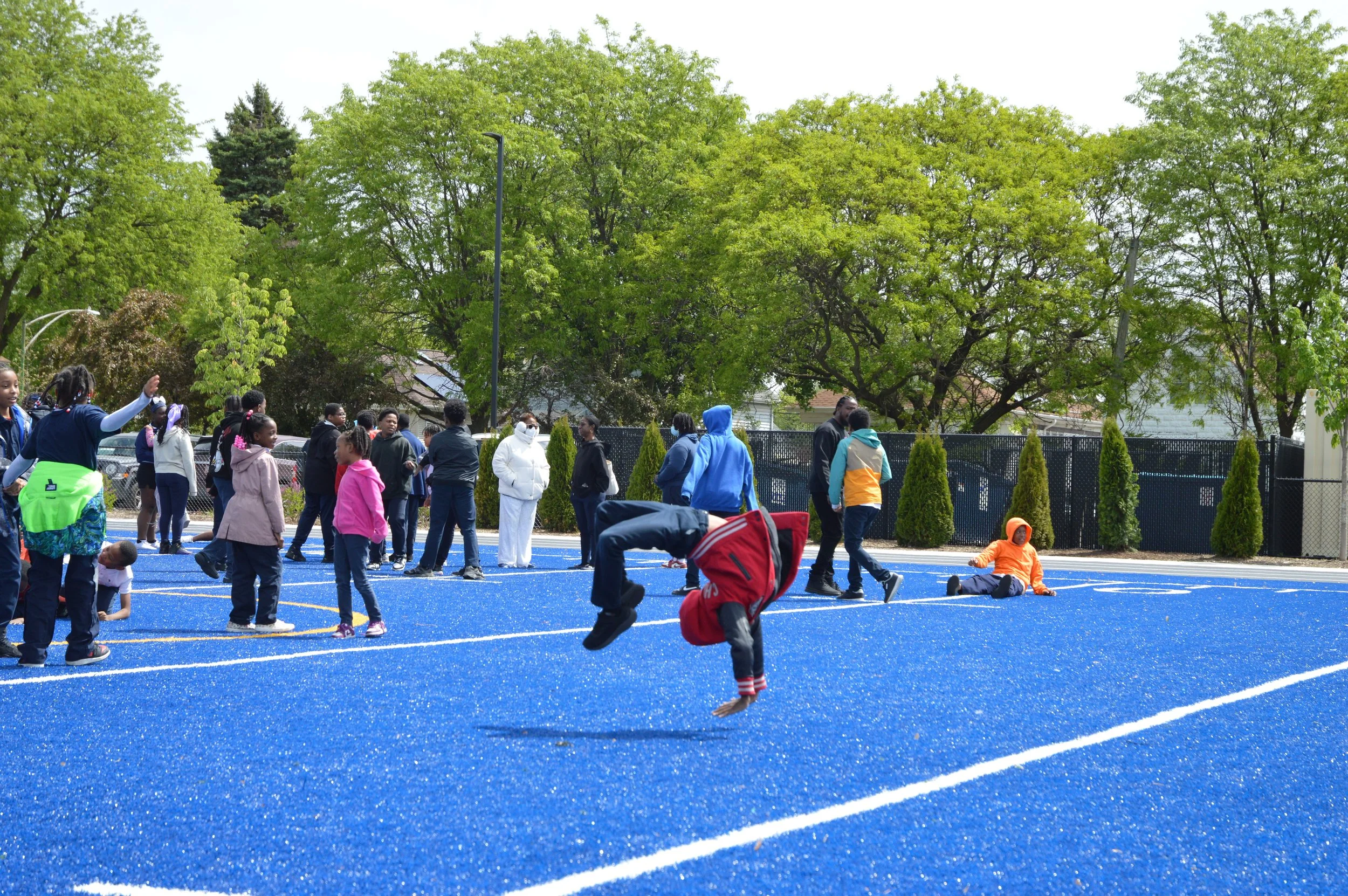 We collaborated with Chicago Public Schools and Openlands - Space to Grow to design and install a new schoolyard, including a football field and playground. The students and community were engaged in the design process throughout. The outdoor space has been transformed into a vibrant, high-performance recreation area for the students while simultaneously storing and managing more than 300,000 gallons of stormwater. The rain gardens also provide an opportunity for students to engage with nature. The project enhances student athletics, promotes community engagement, and provides a durable, safe surface for years of play and competition.